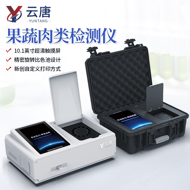 山東云唐智能科技有限公司生產(chǎn)的水果蔬菜肉類食材快速檢測設(shè)備,采用手提箱式一體化設(shè)計,可快速檢測幾十種項目,包含各種蔬菜水果中有機(jī)磷和氨基甲酸酯類農(nóng)藥殘留,病害肉診斷:肉中組胺、揮發(fā)性鹽基氮;各種肉食品中瘦肉精激素類殘留、抗生素、獸藥殘留等現(xiàn)場的定性定量檢測。