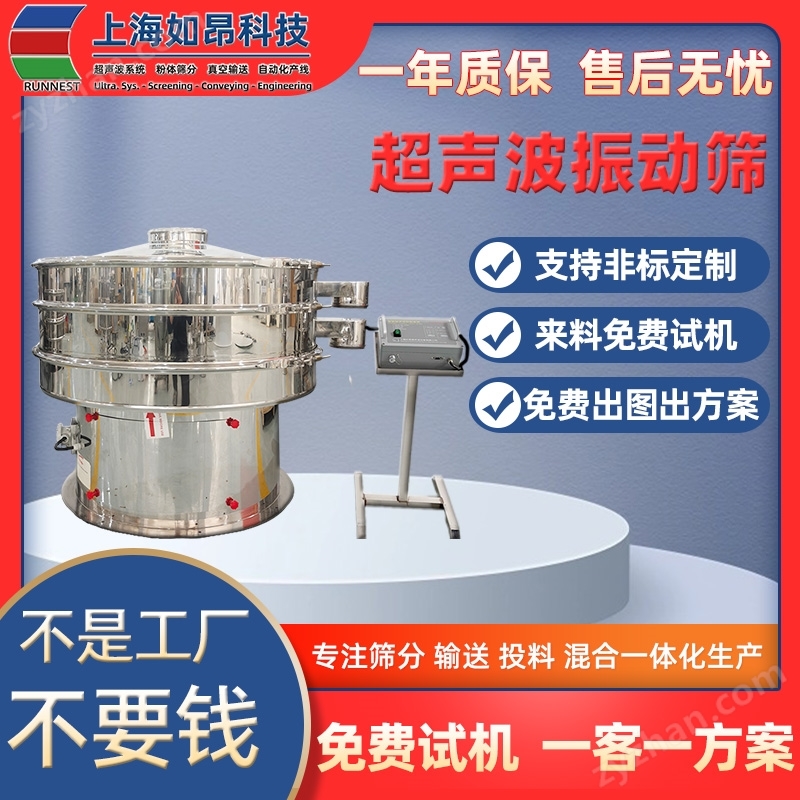 超聲波振動篩的振動頻率為36萬次/分鐘,有效防止篩網堵塞,難以篩分的物料幾乎不堵塞篩網。