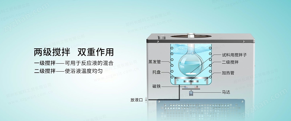 ●內置磁力攪拌器可以帶動槽內攪拌子和反應容器內攪拌子進行旋轉,保持試料溫度均勻;