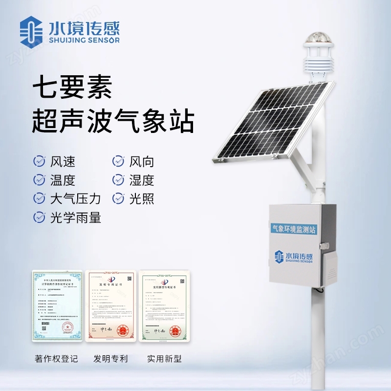 七要素氣象站又稱超聲波氣象站、一體化超聲波氣象站、超聲波氣象監測站,超聲波氣象站整體采用穩固性結構設計,是超聲波式一體化自動氣象站,能夠實現對氣象監測、農林氣候監測等多種氣象環境參數實時監測。超聲波氣象站是一款高度集成、低功耗、可快速安裝、便于野外監測使用的高精度自動氣象觀測設備。該設備免調試,可快速布置,廣泛運用于氣象、農業、林業、環保、海洋、機場、港口、科學考察、校園教育等領域。與傳統的超聲波氣象站相比,我司產品克服了對高精度計時器的需求,避免了因傳感器啟動延時、解調電路延時、溫度變化而造成的測量不準問題。該設備創新性的采用七要素一體式傳感器,可對風速、風向、溫度、濕度、氣壓、光照、光學雨量等氣象要素進行實時觀測,可實現戶外氣象參數24小時連續在線監測,通過數字量通訊接口將七項參數一次性輸出給用戶。