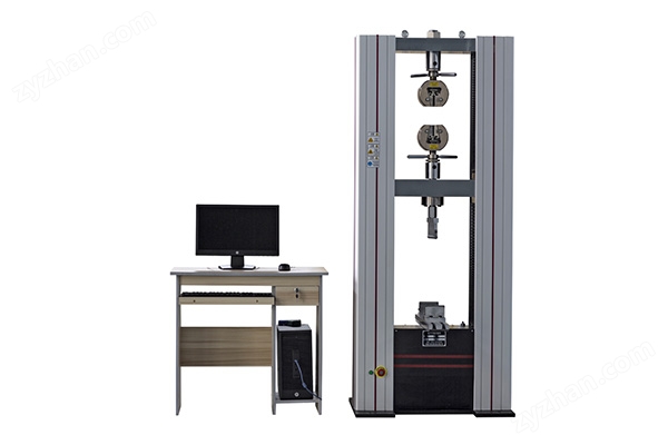 主機結構堅固耐用。粗大的滾珠絲杠和導向光杠、加厚橫梁及底座,構成了堅固的剛性機架,滿足高強度材料的試驗。