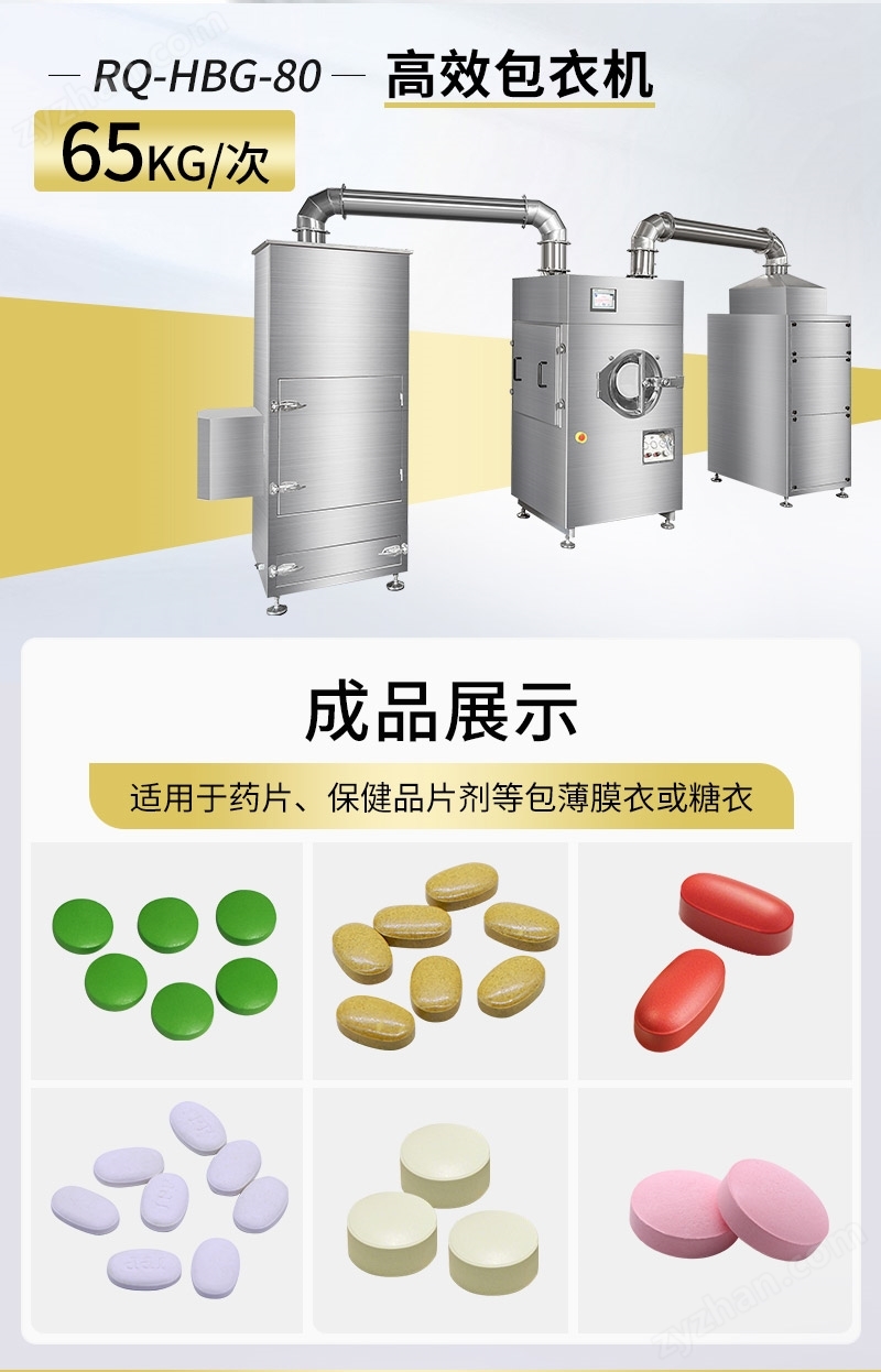 高效節能:密閉式 + 負壓干燥,包衣時間比傳統糖衣機縮短 50% 以上,能耗降低。