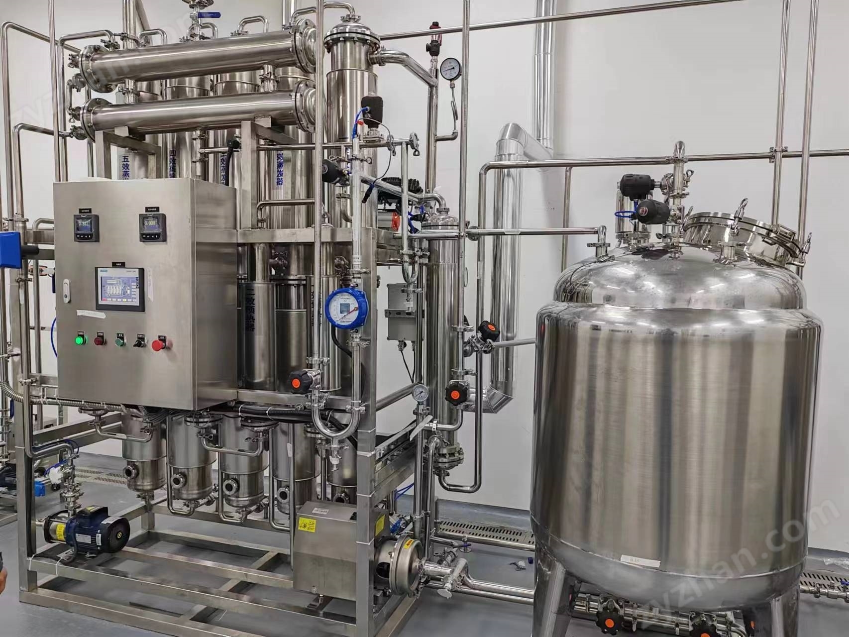 冷凝成品收集:末效產(chǎn)出的純蒸汽進(jìn)入冷凝器冷凝,與各效產(chǎn)生的冷凝水匯合后排出不溶性氣體,再經(jīng)0.22μm終端過(guò)濾與紫外線殺菌,最終成為合格注射用水,出水溫度可達(dá)92~99℃,可直接接入316L不銹鋼無(wú)菌儲(chǔ)罐儲(chǔ)存,滿足制藥行業(yè)無(wú)菌要求。