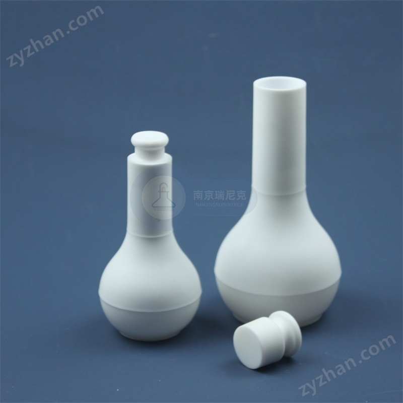 聚四氟乙烯(PTFE)容量瓶:耐高低溫性(可使用溫度-200℃~+250℃)、耐腐蝕(耐強(qiáng)酸、強(qiáng)堿、王水和各種有機(jī)溶劑,且無(wú)溶出、吸附和析出現(xiàn)象)。