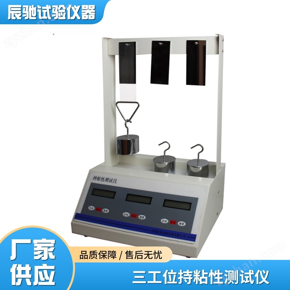 把貼有膠粘試樣的試驗板垂直吊掛在試驗架上,下端懸掛規定重量的砝碼,用一定時間后試樣粘脫的位移量,或試樣*脫離的時間來表征膠粘試樣抵抗拉脫的能力。該儀器符合多項和標準:GB/T 4851、ASTM D3654、JIS Z0237。