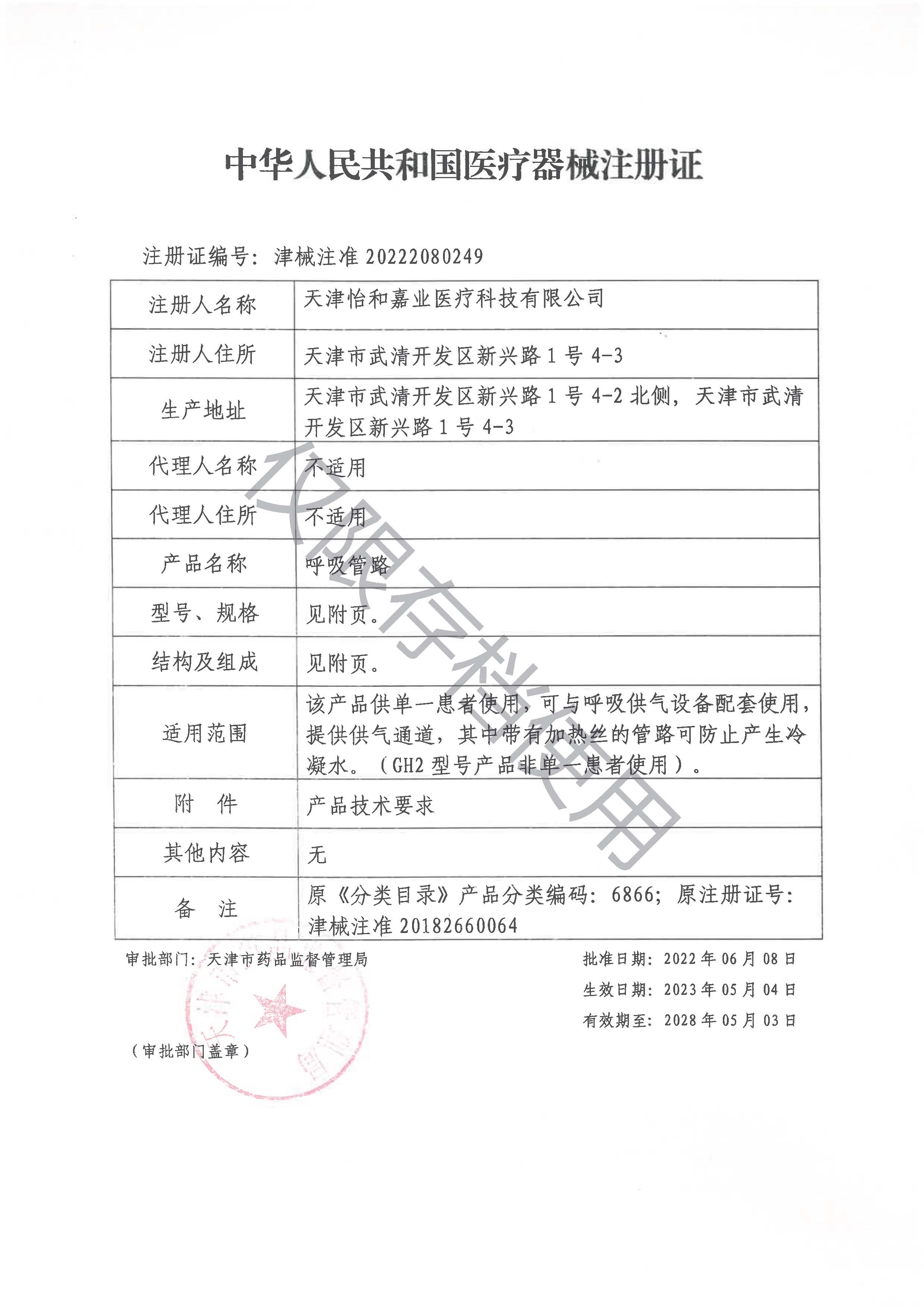 該產品供單一患者使用,可與呼吸供氣設備配套使用,提供供氣通道,其中帶有加熱絲的管路可防止產生冷凝水。(GH2型號產品非單一患者使用)。