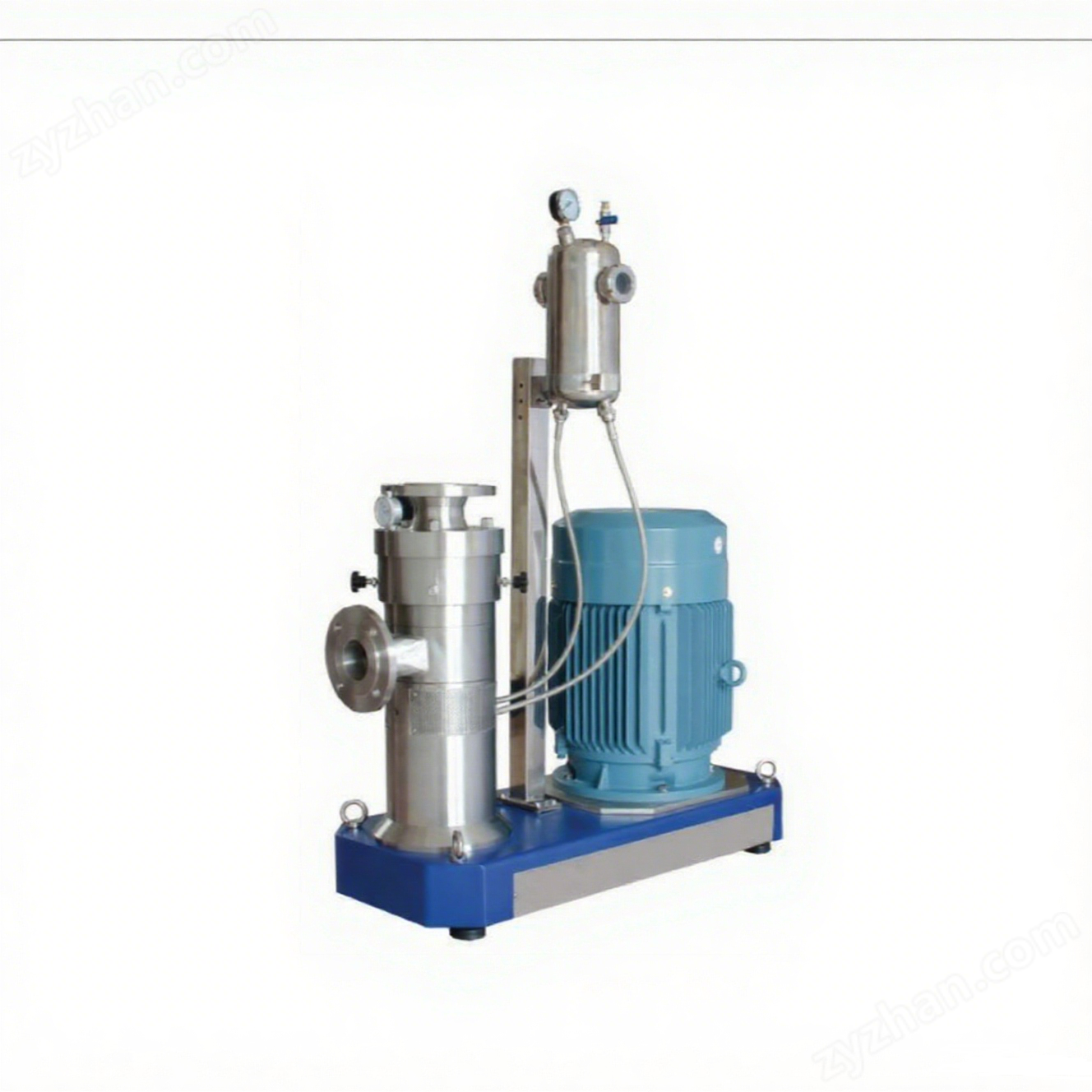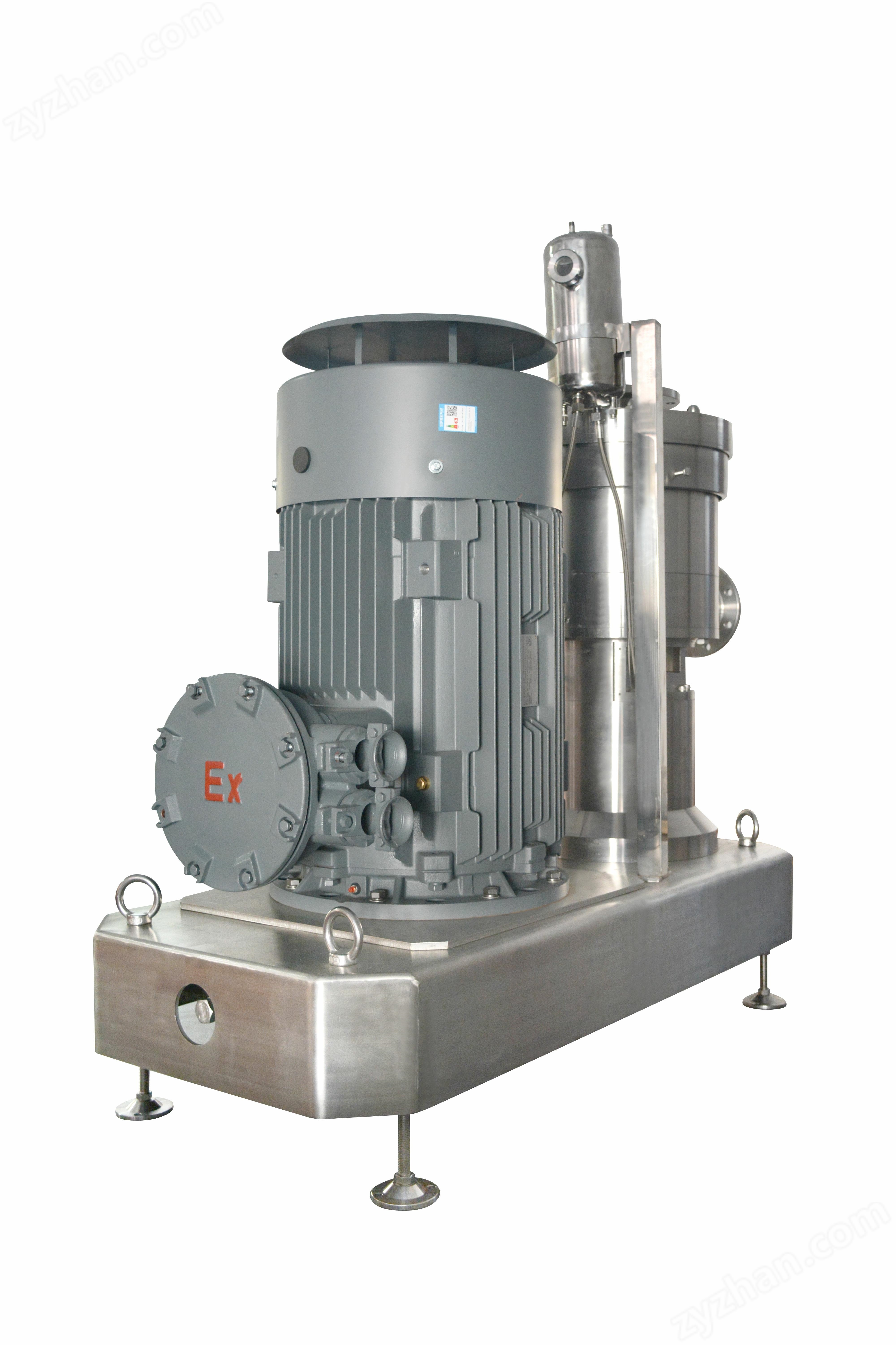 是由電動機通過皮帶傳動帶動轉齒(或稱為與相配的定齒(或稱為定子)作相對的高速旋轉,被加工物料通過本身的重量或外部壓力(可由泵產生)加壓產生向下的螺旋沖擊力,透過膠體磨定、轉齒之間的間隙(間隙可調)時受到強大的剪切力、摩擦力、高頻振動等物理作用,使物料被有效地乳化、分散和粉碎,達到物料超細粉碎及乳化的效果。氧化鋯陶瓷膠體磨的研磨效果對物料的適應能力較強(如高粘度、大顆粒),所以在很多場合下,它用于均質機的前道或者用于高粘度的場合。在固態物質較多時也常常使用膠體磨進行細化。