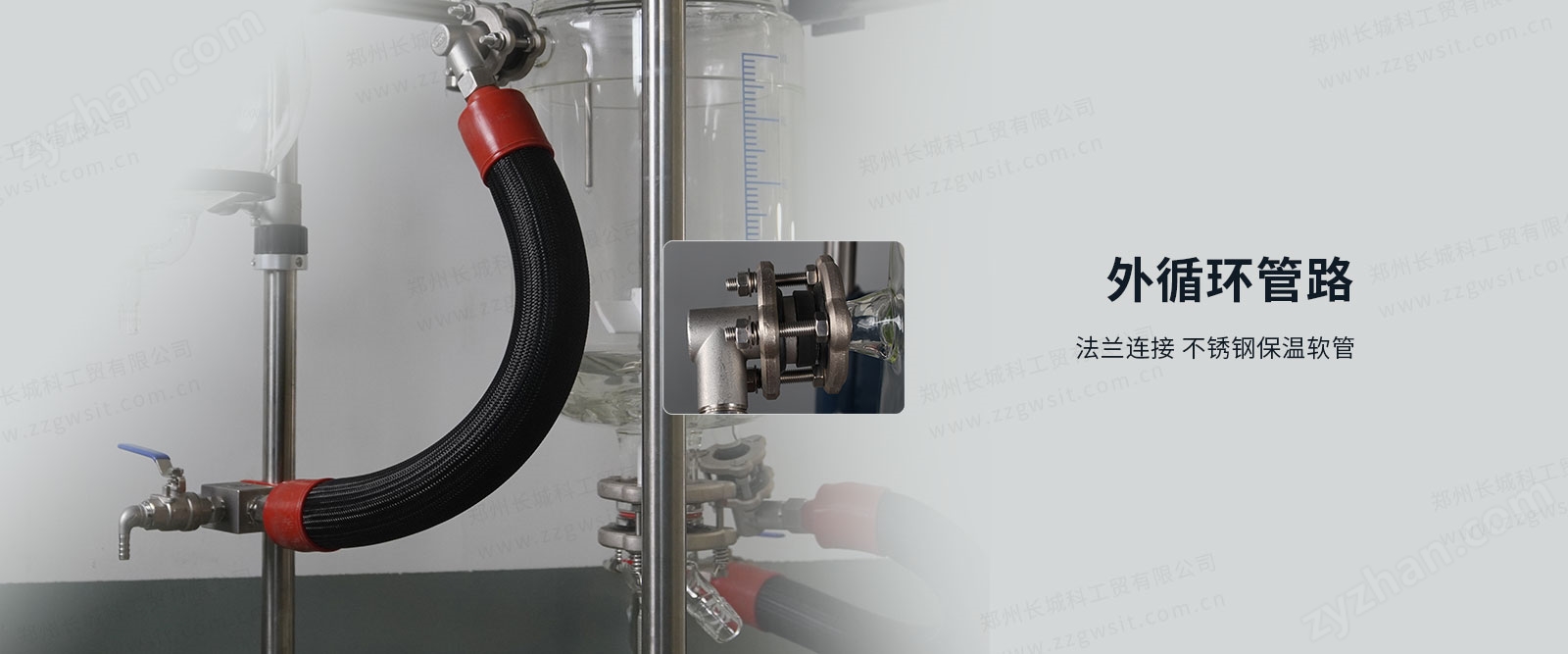 ● 夾套進、出液口連接不銹鋼保溫軟管,消除進出液口應力。