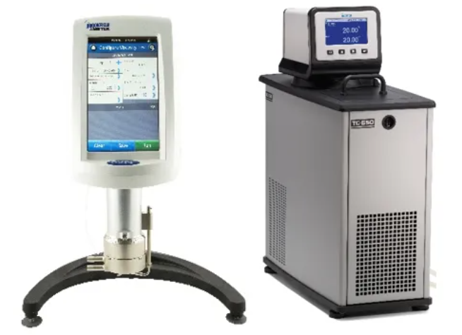 錐板流變儀適用于微量樣品的粘度測試,測試所需樣品體積僅為0.5-2.0 mL(具體的樣品量與所使用的轉子型號相關),可有效節(jié)約測試成本;錐板流變儀使用錐形轉子及配套的樣品杯,可以計算精確的剪切率和剪切應力,得到絕對粘度;樣品杯中內(nèi)置RTD溫度探針,通過外接循環(huán)水浴,可實現(xiàn)測試過程中樣品溫度的控制和測量;由于樣品量很少,可快速恒溫,有效提高測試效率。TC-650 AP循環(huán)水浴系統(tǒng)的控溫精度最高可達0.01℃,為粘度測試提供準確及穩(wěn)定的溫度條件。